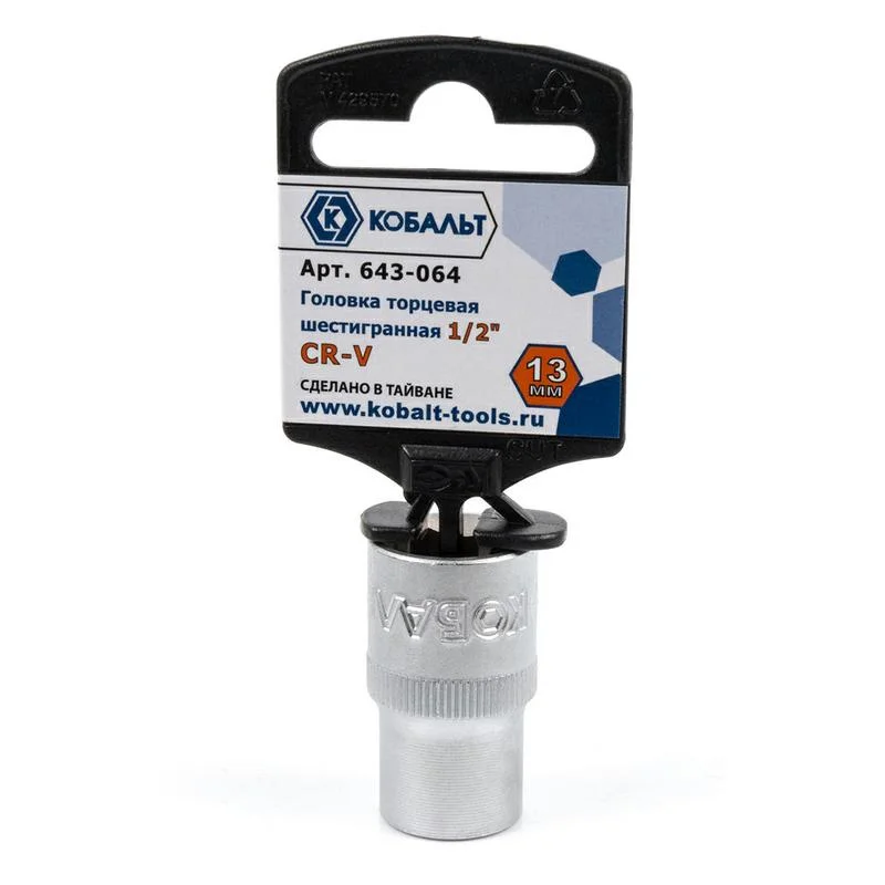 Цена указана за Головка торцевая 1/2", 13 мм, Cr-V, КОБАЛЬТ, подвесОсновные характеристики